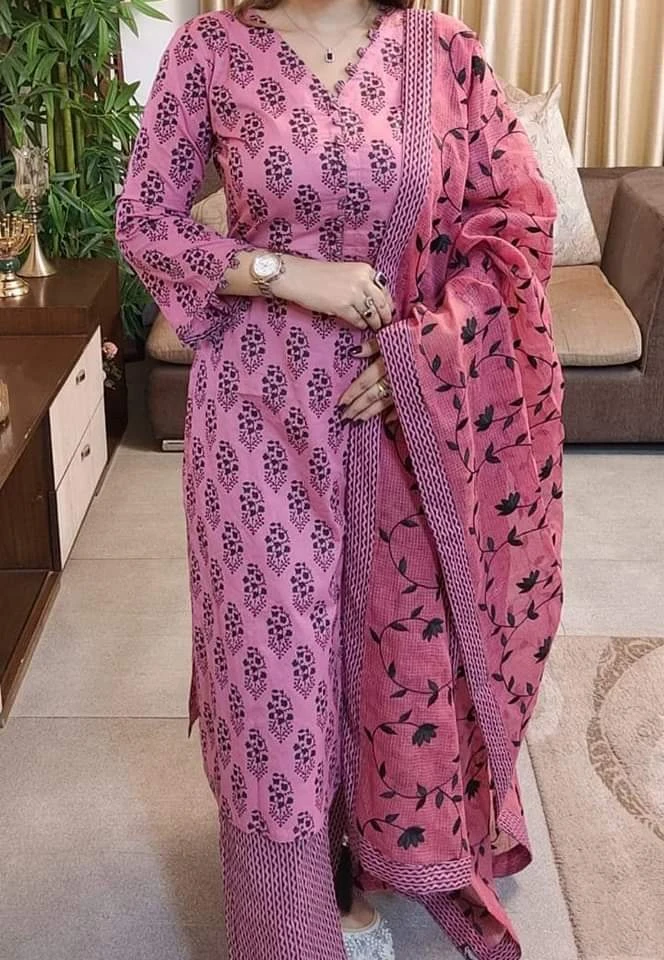 Block Print Three Piece for women and girls - Online shopping at best prices at Nazmas.com