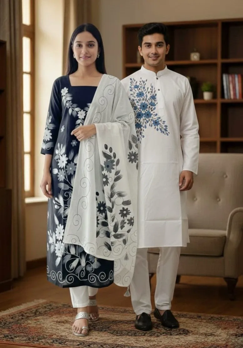 Panjabi Three Piece Couple Set
