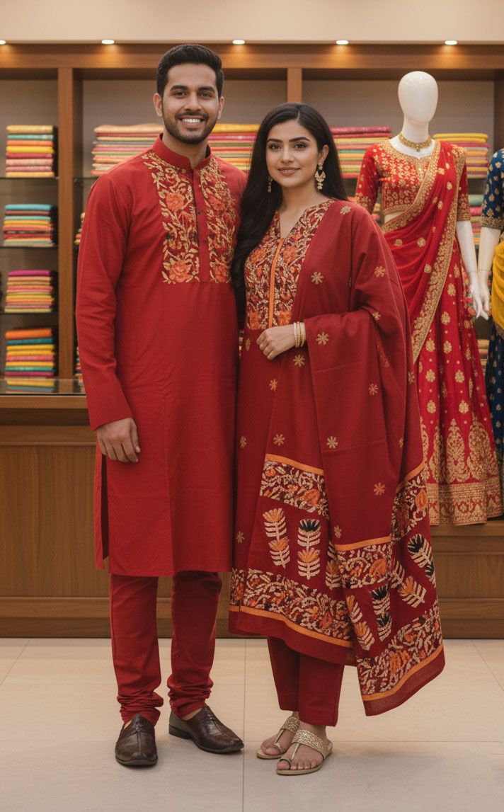 Panjabi Three Piece Couple Set