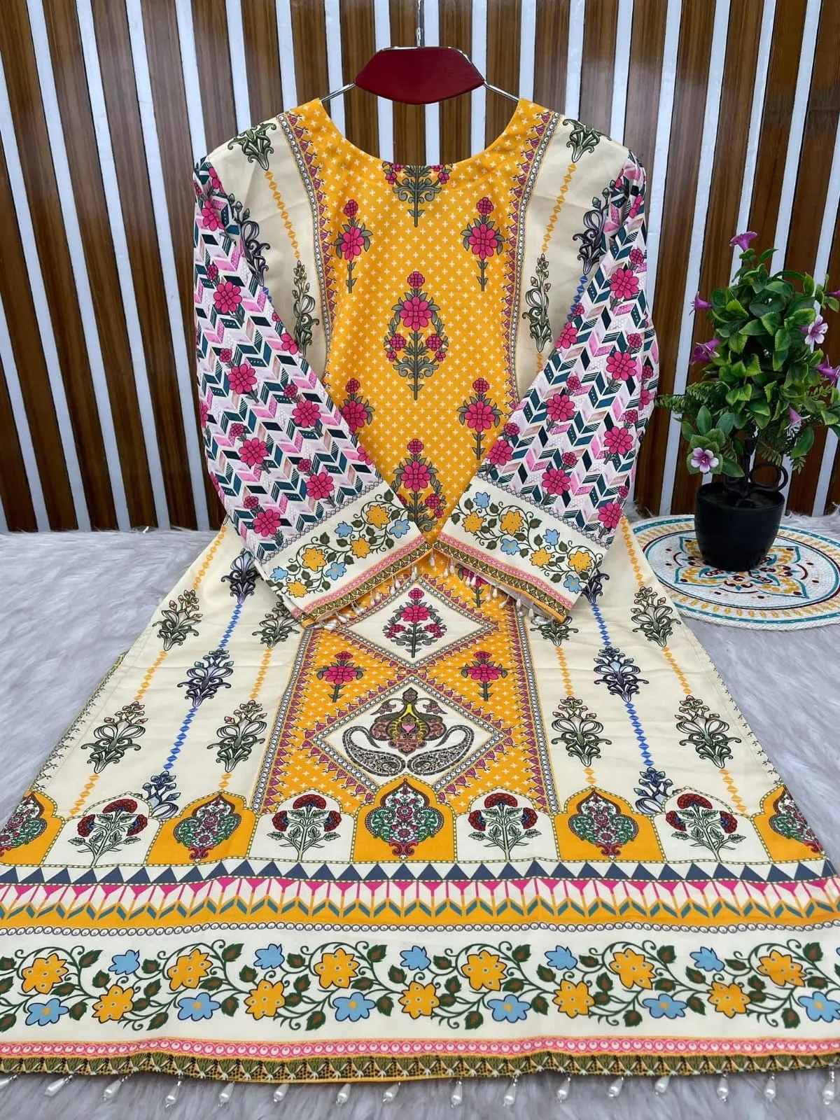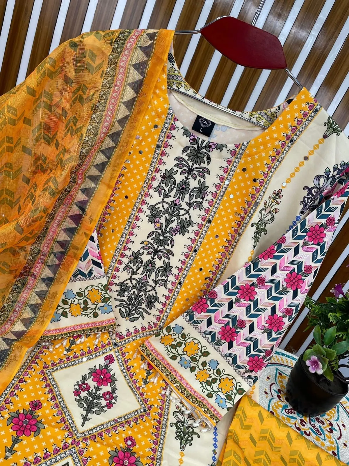 ফেব্রিক্সঃ কামিজ অ্যান্ড প্যান্টের ফেবরিক মাইকো স্ট্রিজ। ওড়না জর্জেট।