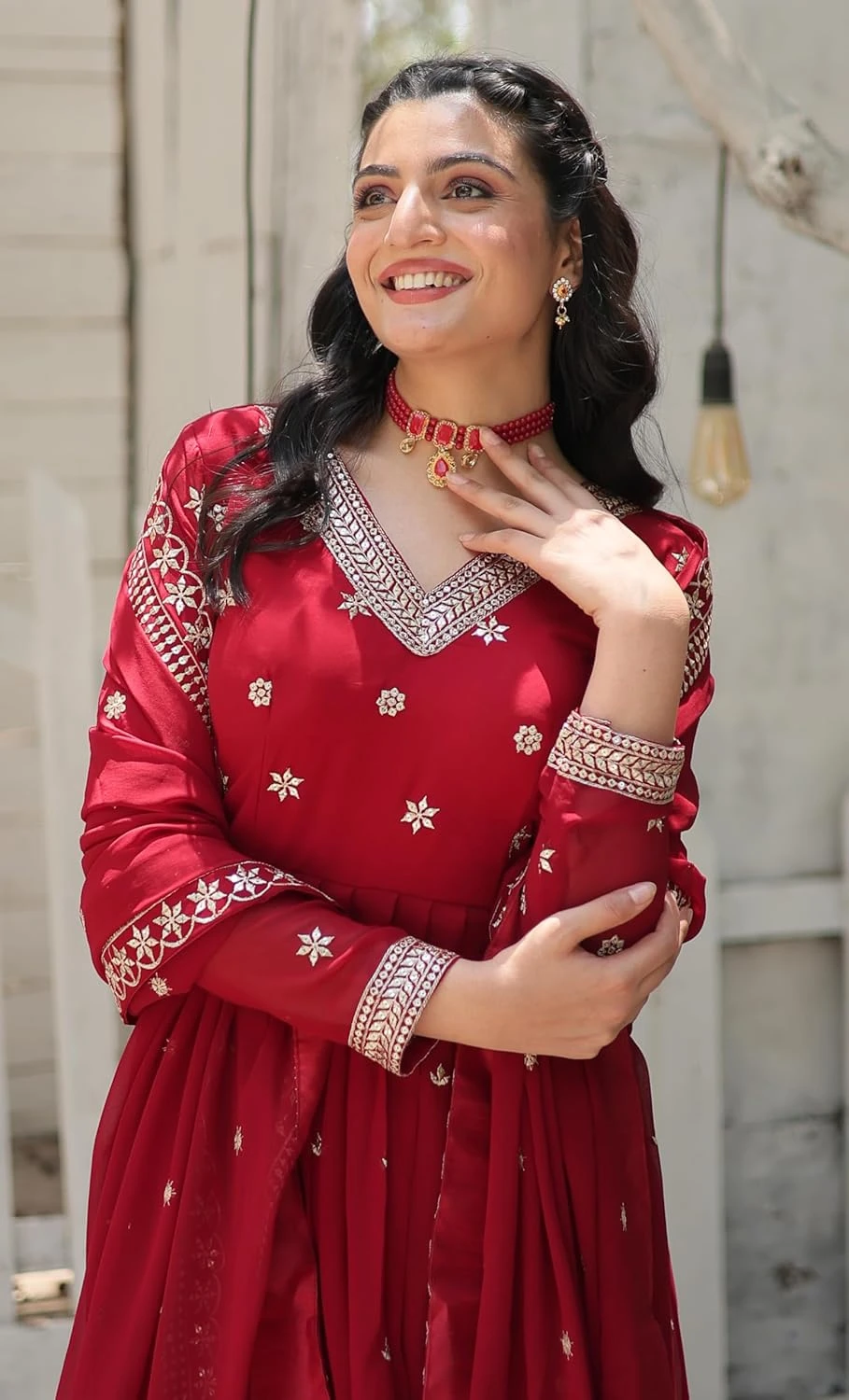 Elegant Three Piece Party Gown Online | Best price in BD at Nazmas! Shop now to dazzle at your next event with exquisite designs that turn heads.