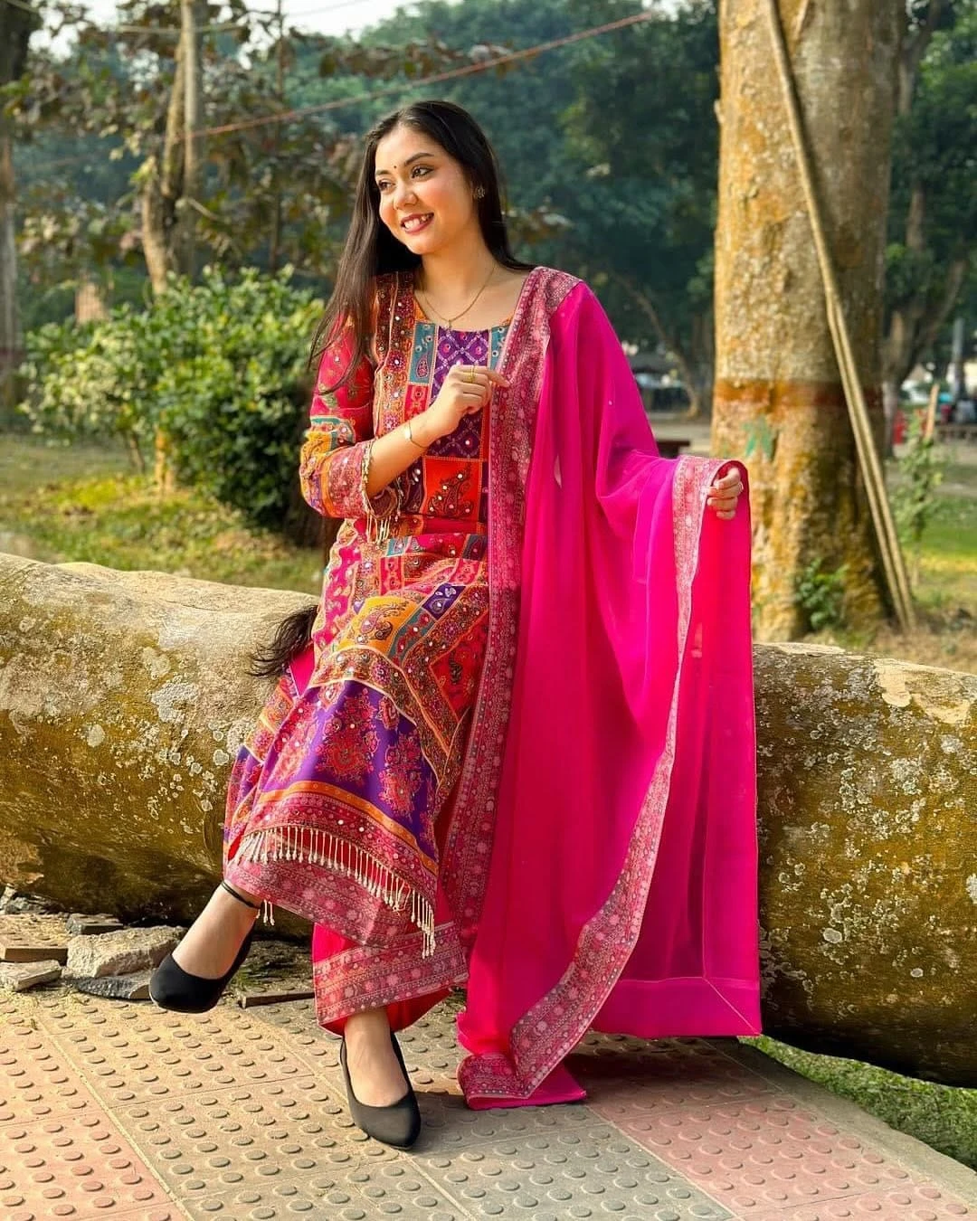 ওড়না : কাপড় জর্জেট। ডিজিটাল প্রিন্টের কাজ।