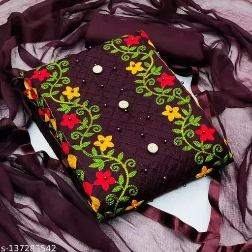 Make a statement with the Kashmiri Aari Embroidery Three-Piece from Nazmas. This outfit features exquisite Aari work that is sure to turn heads. The fabric is comfortable and luxurious. When you shop online at Nazmas, you get the best price in Bangladesh. We offer this premium collection at an affordable price. Buy now and be the envy of all. Nazmas ensures the lowest price and delivery across BD. Order your Kashmiri Aari Embroidery Three-Piece today and shine.