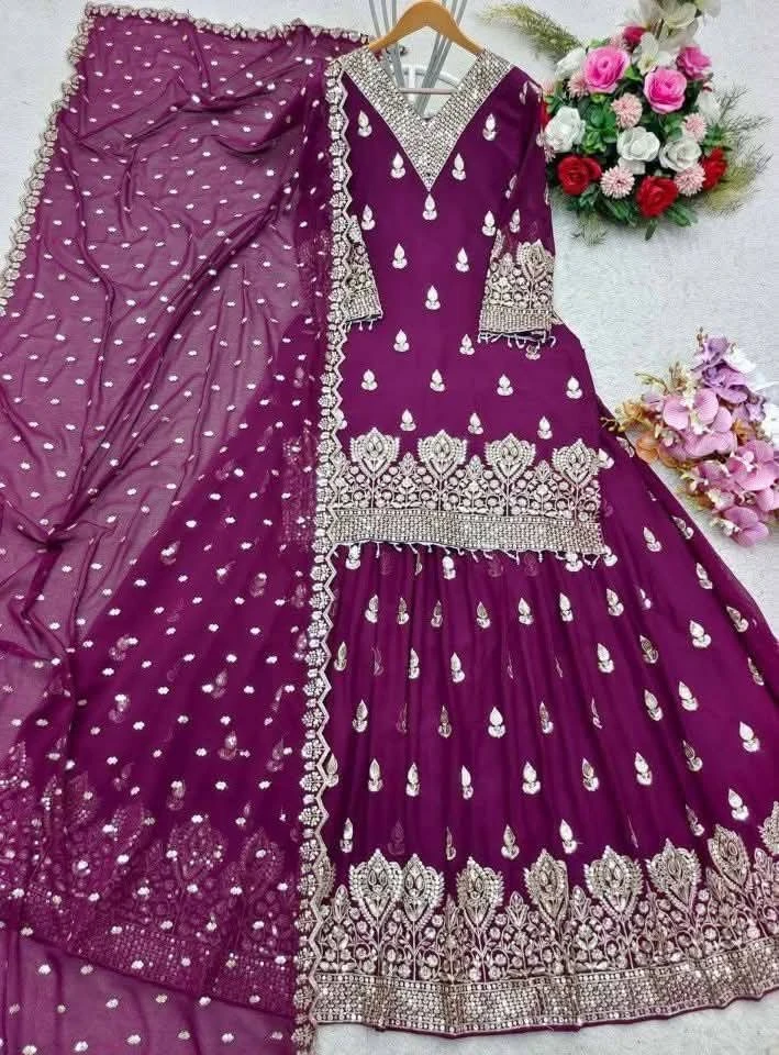 -Fabrics : Premium Soft Jorjet With sequence embroidery And Inner Attached