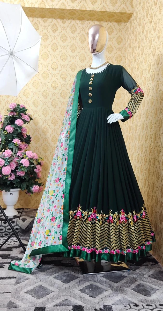 রেডিমেড জর্জেট এমব্রয়ডারি পার্টি ড্রেস