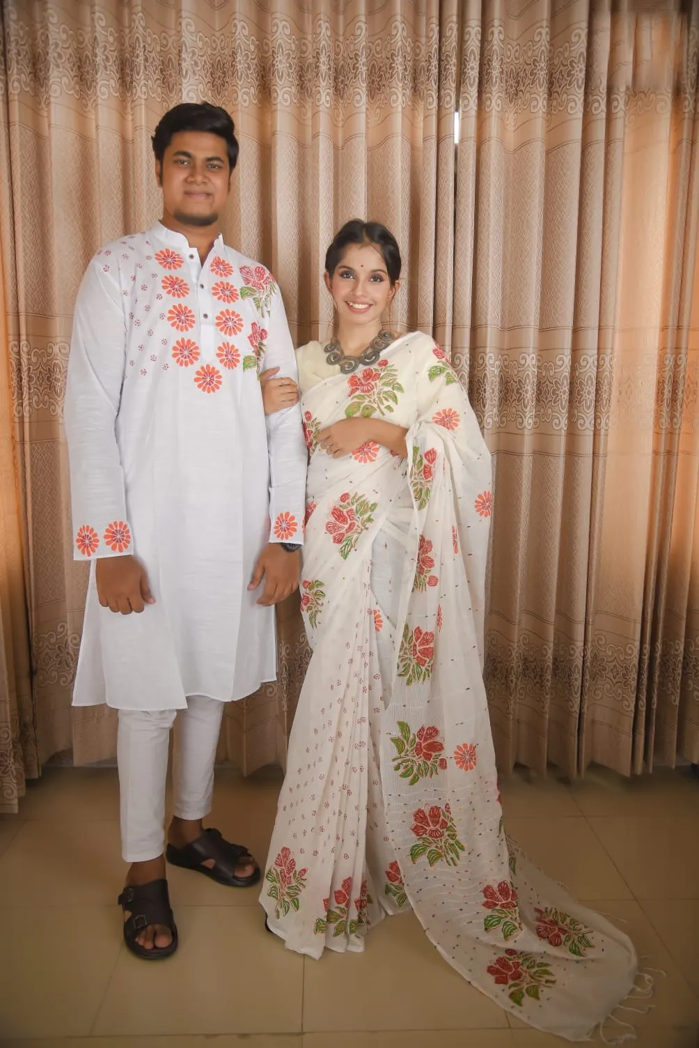 সুতি শাড়ী ও স্লাব কটন পাঞ্জাবিকাপল সেট