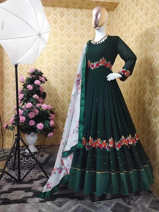রেডিমেড জর্জেট এমব্রয়ডারি পার্টি ড্রেস