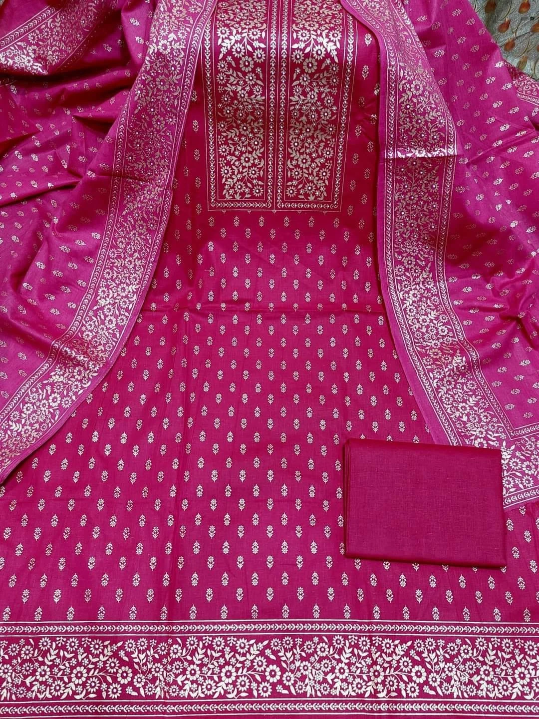 Add a touch of artistic flair to your wardrobe with the Unstitched Screen Print Three-Piece from Nazmas. This high-quality fabric is perfect for designing an outfit that captures your unique style. The screen print is exquisite and adds a modern touch to traditional wear. Shop online at Nazmas to find the best price in Bangladesh. We are committed to offering an affordable price for premium fabrics, allowing you to buy more for less. Buy this Unstitched set today and enjoy the freedom of custom design. Nazmas guarantees the lowest price and swift delivery across BD. Invest in quality fabric that looks and feels great. Order now and start creating your dream attire.