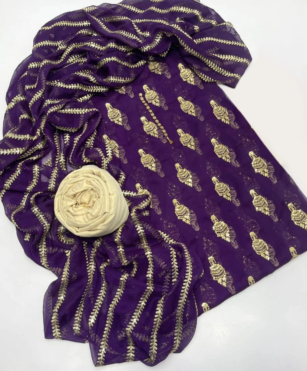 Choose Nazmas' Unstitched Georgette Three Piece in 4 colors. Shop online in Bangladesh for the lowest prices for your perfect outfit!