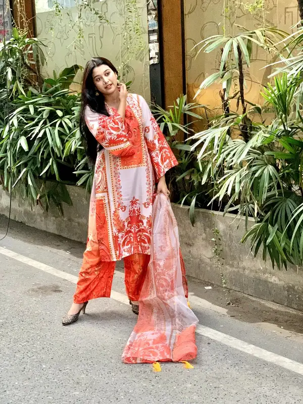 Shop Digital Print Three Piece with high-quality prints. Buy online at Nazmas for the best price in BD. Get the lowest price in Bangladesh today.