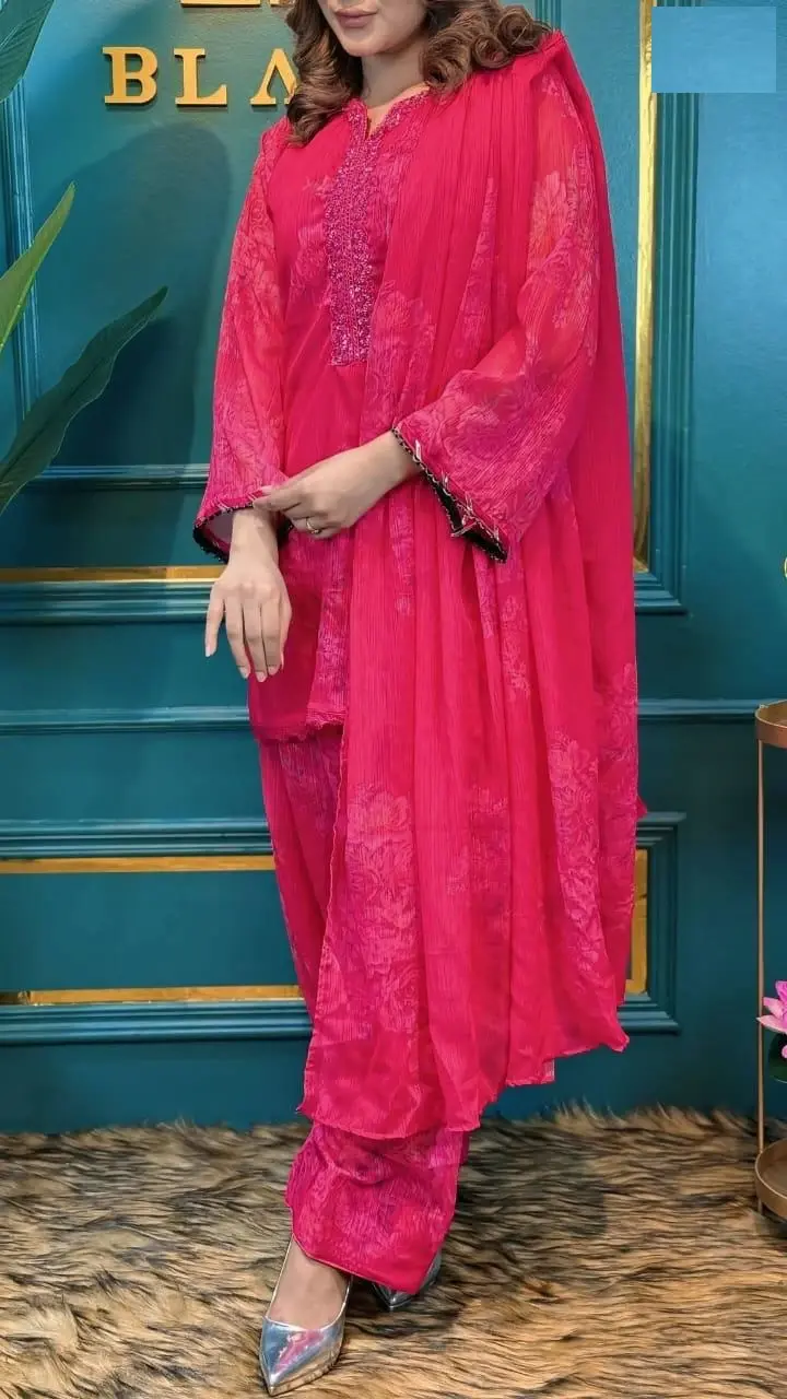 Step into elegance with the Nazmas Pakistani Inspired Three Piece - Elegant Design. This outfit brilliantly marries traditional aesthetics with modern style, making it suitable for any occasion. The high-quality fabric ensures comfort, while the unique designs will turn heads. Available online at the best price in Bangladesh, indulge in this timeless piece. Elevate your wardrobe with elegance—buy this beautiful outfit today!