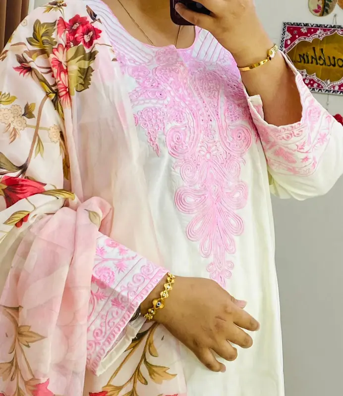 সেলোয়ার- এসি কটন। সেলোয়ার-নিচে কম্পিউটার কাজ করা।
