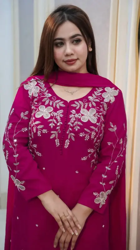 Discover the Nazmas Rayon Cotton Dress Full Set Embroidery - Unique Style, a perfect blend of comfort and uniqueness. This intricately embroidered set showcases stunning craftsmanship while providing the ease of rayon cotton. Ideal for both casual and semi-formal occasions, you’ll love how effortlessly stylish it is. Shop online to find this fashionable piece at the best price in Bangladesh. Embrace your unique style—buy this standout set today!