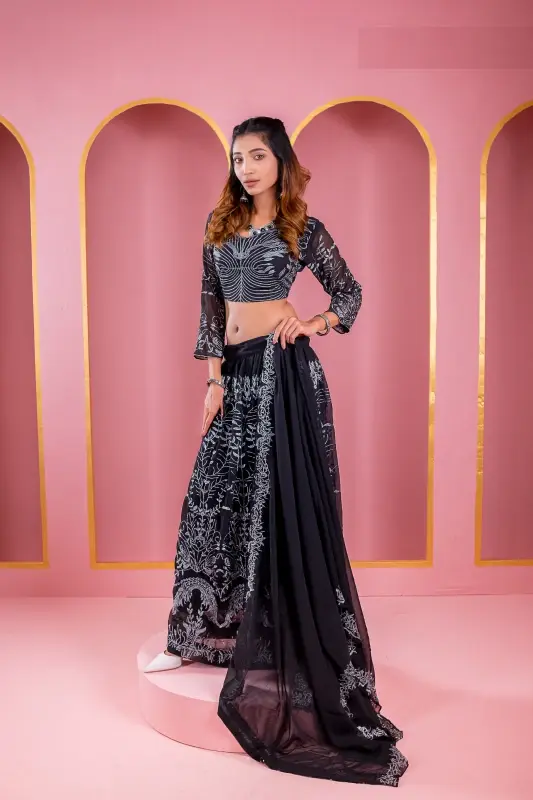 রেডিমেড লেহেঙ্গা জর্জেট এমব্রয়ডারি পার্টি ড্রেস