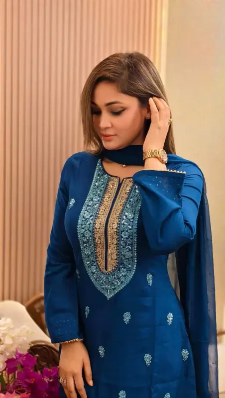 নাইরা কাট লিনেন সিকুয়েন্স স্টিচড থ্রি পিস