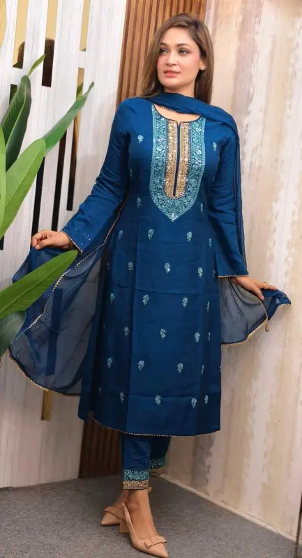 Step into the spotlight with our Naira cut linen three-piece sets, designed for elegance and comfort at Nazmas. Available at the best price in Bangladesh, each ensemble features a contemporary cut that flatters every figure. The lightweight linen fabric is perfect for summer, making styling effortless while ensuring you look fabulous. Ideal for casual outings or festive occasions, these outfits will quickly become your go-to choice. Shop online today and experience hassle-free fashion with the best prices guaranteed at Nazmas!