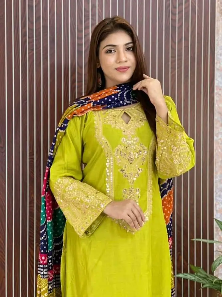 Stylish Linen Sequence Three Piece Attire