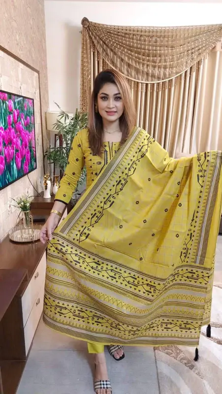 Add a touch of sophistication to your wardrobe with the Unstitched Afsan Screen Print Three-Piece, brought to you by Nazmas. This premium fabric features a stunning screen print that is both trendy and timeless. The Afsan design is known for its detailed patterns, making it a favorite among fashion enthusiasts. When you decide to shop online at Nazmas, you are choosing quality and the best price in Bangladesh. We offer this Unstitched collection at an affordable price, ensuring that you get the most value for your money. Buy now and get ready to stitch a perfect outfit that reflects your personal style. Nazmas delivers all over BD, guaranteeing customer satisfaction with every purchase. Don't miss out on this opportunity to own the lowest price premium fabric. Visit Nazmas today and make the Unstitched Afsan Screen Print Three-Piece yours.